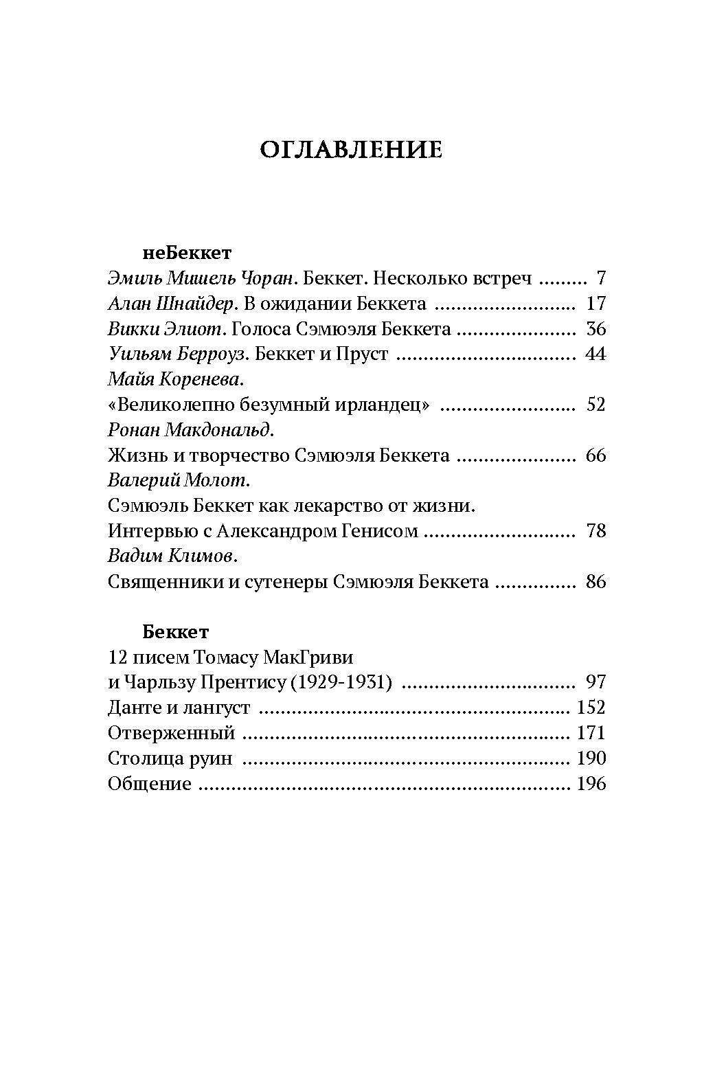 Как писал Эмиль Мишель Чоран о Сэмюэле Беккете: «С первой нашей встречи я понял, что он — у самого края, что, скорей всего, он оттуда и шел: от невозможного, немыслимого, безнадежного. Поразительно, что при этом он не двигался с места и, разом упершись в стену, со всегдашним присутствием духа продолжал стоять на своем: предел как отправная точка, конец как прибытие! Отсюда это чувство, что его скорченный, агонизирующий мир может длиться до бесконечности, тогда как наш в любую минуту готов исчезнуть». Перед вами сборник критических эссе и статей о Сэмюэле Беккете, авторе знаменитых «В ожидании Годо» и «Моллоя», дополненных редкими прозаическими произведениями ирландского абсурдиста.